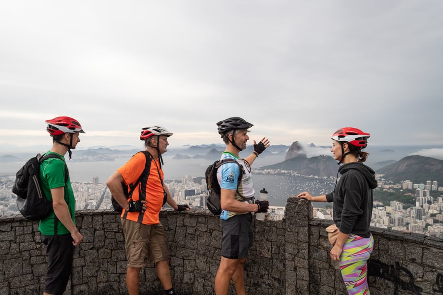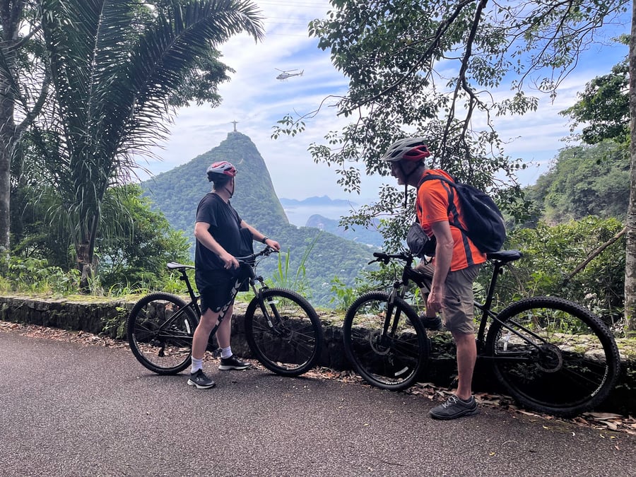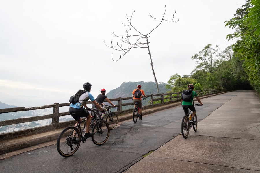 Ao pedalar por essa maravilha natural, aproveite paradas deslumbrantes em mirantes icônicos como o Mirante Dona Marta, o Mirante do Jardim Botânico e o Mirante dos Prazeres. Esses pontos oferecem a oportunidade perfeita para capturar fotos incríveis da paisagem urbana do Rio e da natureza ao redor. Nosso itinerário flexível inclui pausas para descanso e para apreciar plenamente a beleza serena que o cerca. Pedalando por esse paraíso verde, você sentirá a emoção da aventura a cada curva.